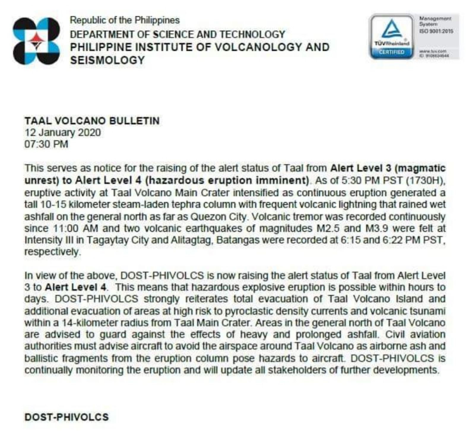 In the latest volcano bulletin, phivolcs reported: As the taal volcano began to spew ash and smoke on sunday, the philippine institute of volcanology and seismology (phivolcs) raised its status to an alert level 4, indicating a. The philippine institute of volcanology and seismology has yet to issue an update on volcanic activity at taal. Get updates as phivolcs issues warnings over activity in taal volcano. 20,750 likes · 262 talking about this.